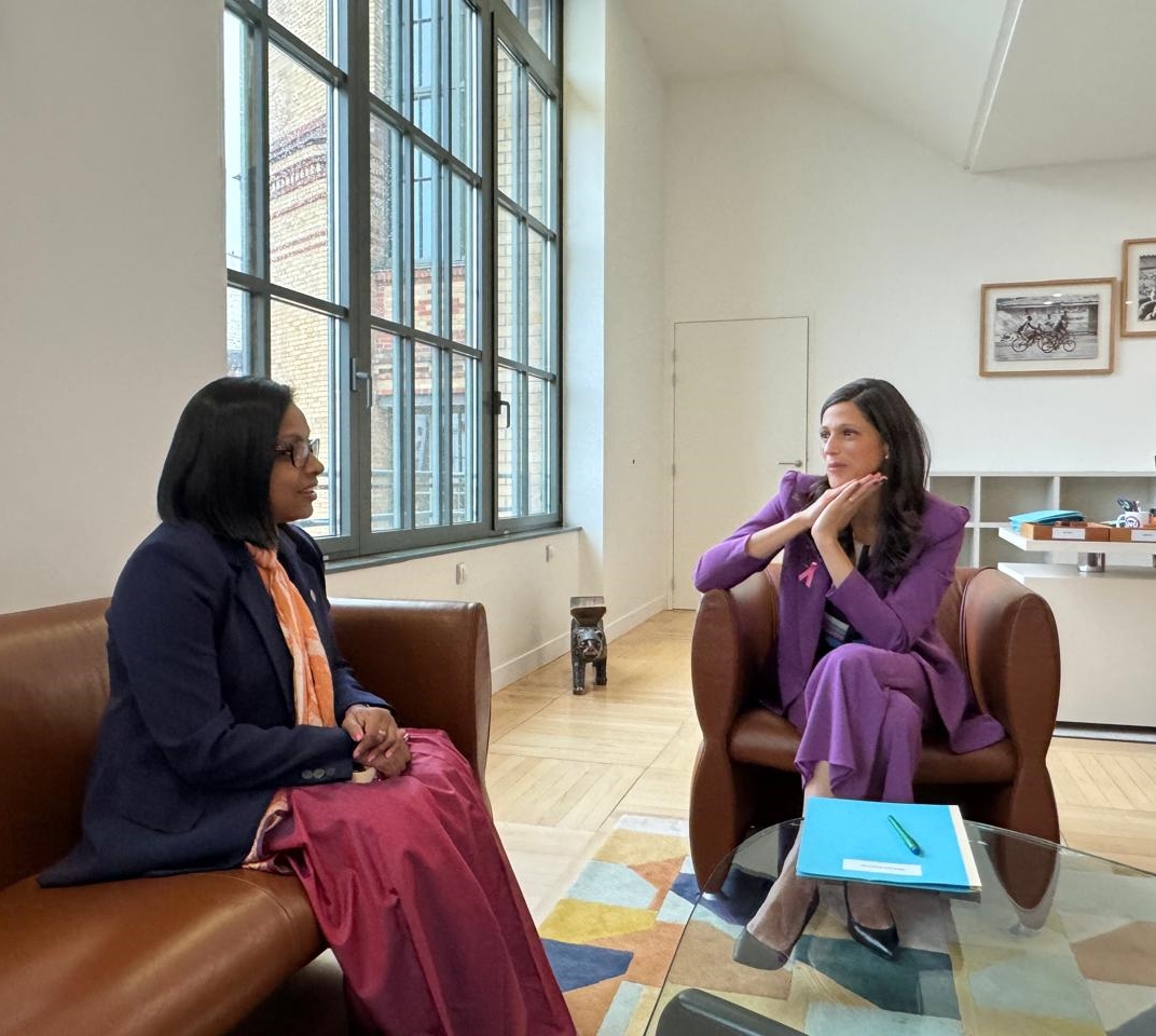 On the sidelines of the Conference, Deputy Minister Ariyarathne had several meetings with senior interlocutors from the French side.  The Deputy Minister met the Minister Delegate (Vice Minister) for Francophonie, International Partnerships and French Nationals Abroad of the French Ministry for Europe and Foreign Affairs Éléonore Caroit on Thursday 23 October at the Foreign Ministry.  The meeting entailed a productive discussion on issues of shared interest including bilateral cooperation; promotion of trade, investment and tourism; development cooperation; French language teaching; as well as cultural relations.  The Deputy Minister congratulated Vice Minister Caroit on her recent appointment to the important post and extended her best wishes.  She also extended an invitation to the French Vice Minister to visit Sri Lanka.  Both parties reiterated their shared commitment to further consolidating and advancing the bilateral partnership.