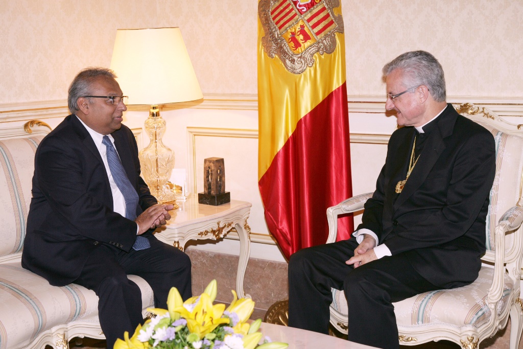 During the cordial one on one discussion that ensued, Ambassador Athauda extended greetings of President Maithripala Sirisena to His Excellency, Joan Enric Vives I Sicilia and apprised him of the progress made by Sri Lanka in the political and economic fronts. He further briefed the Co prince of the initiated efforts of the new government to further strengthen, nurture and preserve democracy, fundamental rights, human rights and media freedom and to give priority to reconciliation while creating a conducive environment to boost trade, investment and tourism.