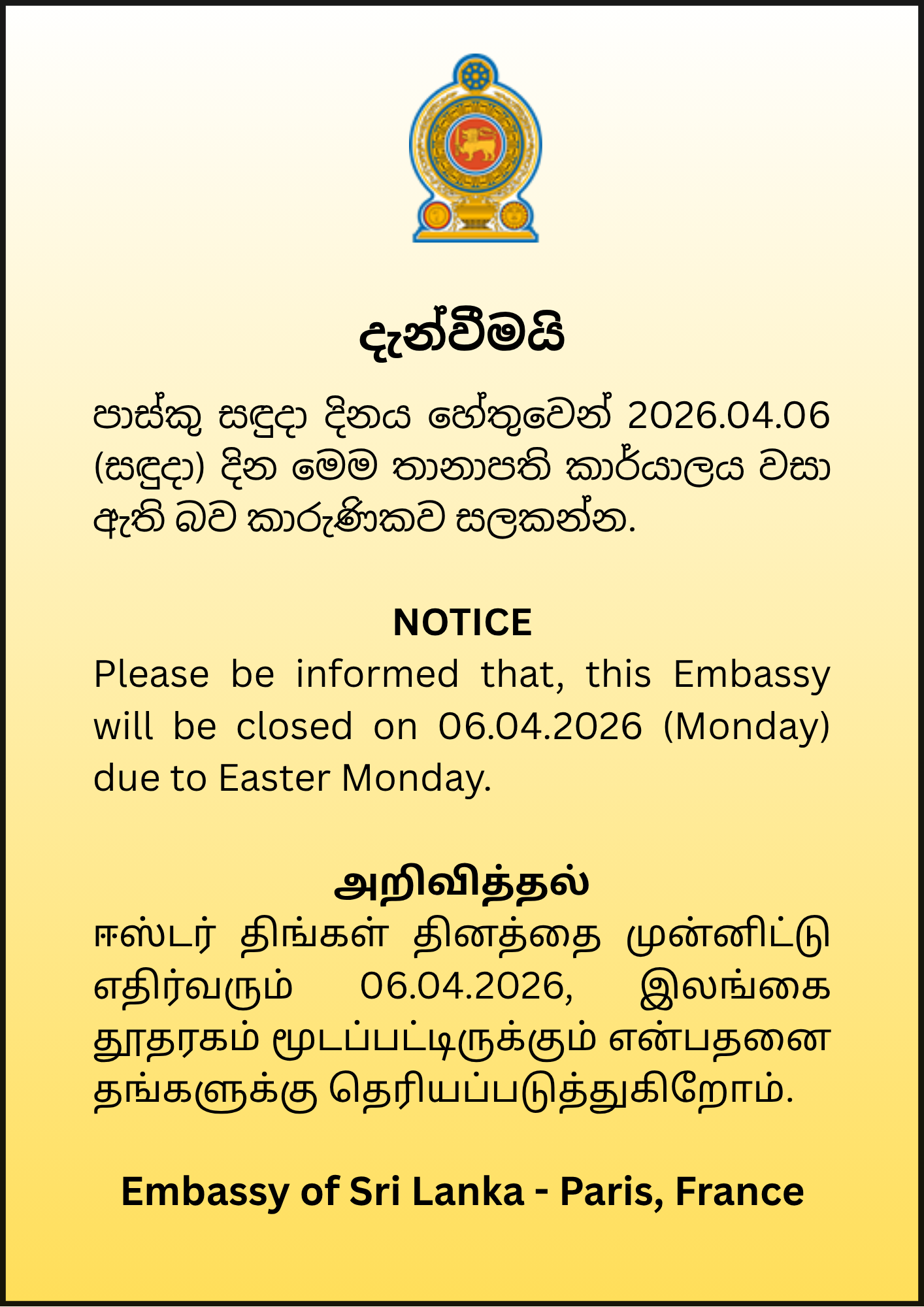 L’Ambassade de Sri Lanka en France recherche un/une secrétaire multilingue / réceptionniste.