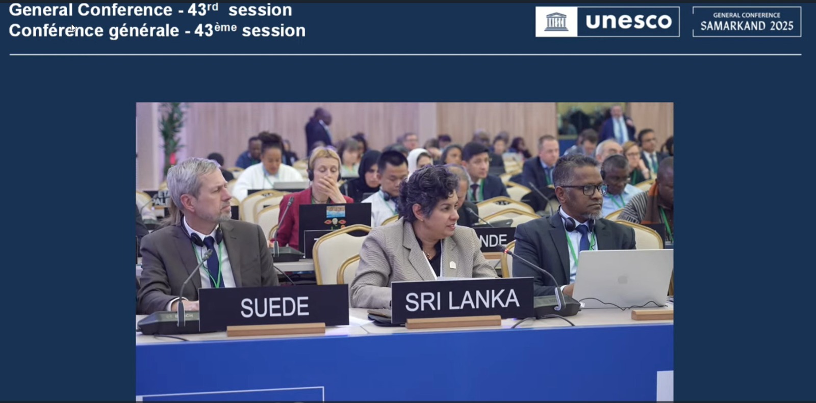 La décision initiale 219 EX/27 du Conseil exécutif de mars 2024 a été co-rédigée par le Sri Lanka et un groupe de pays partageant une vision commune, comprenant le Bhoutan, le Cambodge, l'Indonésie, la République démocratique populaire lao, la Mongolie, le Myanmar, le Népal et la Thaïlande, et avait bénéficié du soutien des États membres de l'UNESCO de toutes les régions, y compris l'Inde. À la suite de l'adoption de la décision du Conseil exécutif en 2024, le Sri Lanka a collaboré avec les États membres et le Secrétariat de l'UNESCO, dans le cadre de la célébration du Vesak 2024 à l'UNESCO, à l'organisation d'une soirée culturelle sur le thème « Harmonie en mouvement : célébrer Vesak par la danse, la musique et l’expression culturelle» ; et la célébration du Vesak 2025 avec un symposium sur le thème « Cosmopolitisme bouddhiste et échanges le long de la route de la soie : interaction entre le bouddhisme et le commerce dans l'Asie ancienne ». Ces événements ont mis en évidence la valeur du Vesak en tant que célébration culturelle qui unit les civilisations à travers le monde, tout en célébrant le patrimoine commun de l'humanité.